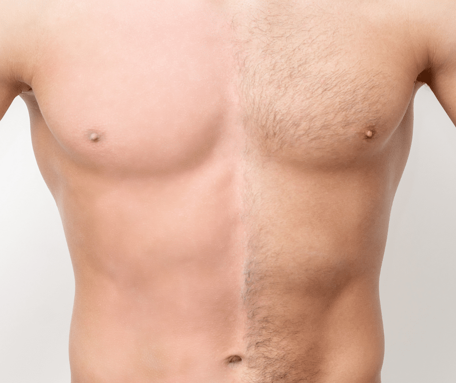 Selon le souhait, il est possible de conserver une légère pilosité ou d’obtenir un torse totalement lisse.