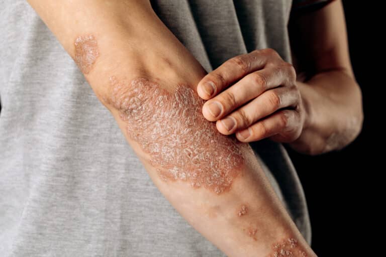 Le psoriasis en lui-même ne laisse généralement pas de cicatrices permanentes, sauf en cas de grattage excessif ou d’infection secondaire.
